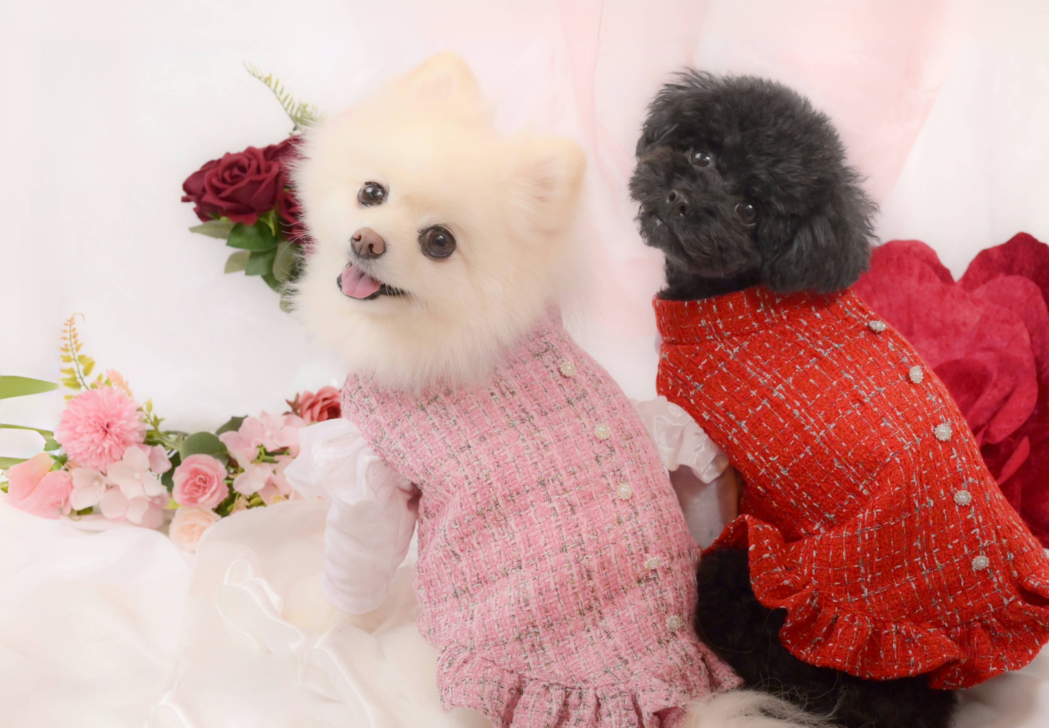エマちゃん❤︎ポメラニアン 3.5kg 《M / Pink》Tweed dress【Red】